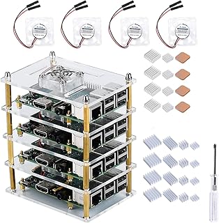 GeeekPi Raspberry Pi 4 Model B & Raspberry Pi 3 B + Gehäuse 4 Schichten Transparent Klar Acryl Fall Stapelbarer Fall Cluster Fall mit Lüfter und Kühlkörper für Raspberry Pi 3/2 Modell B