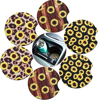 6 Stück Sonnenblume Auto Untersetzer Neopren Auto Getränkehalter Untersetzer Getränkehalter Untersetzer Blume Getränkehalter Matte für Auto, um Getränkehalter Sauber zu Halten (2,56 Zoll)