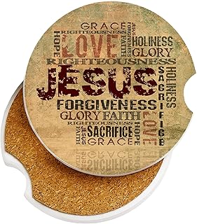 Getränkehalter mit Jesus und religiösen Wörtern, Auto-Untersetzer, 2 Stück, Keramik-Stein, saugfähig, Sandstein, Getränkehalter, 6,5 cm, für Damen und Herren