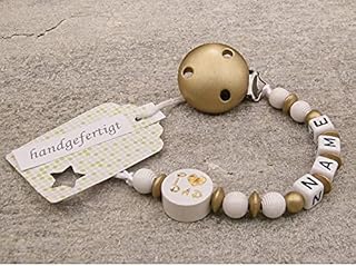 kleinerStorch Baby SCHNULLERKETTE mit Namen - Schnullerhalter mit Wunschnamen - Mädchen Jungen Motiv i Love dad mom in Gold