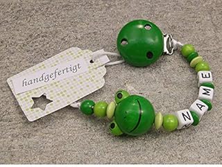 kleinerStorch Baby SCHNULLERKETTE mit Namen - Schnullerhalter mit Wunschnamen - Mädchen Jungen Motiv Frosch in grün