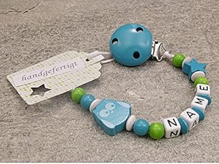 kleinerStorch Baby SCHNULLERKETTE mit Namen - Schnullerhalter mit Wunschnamen - Mädchen Jungen Motiv Stern und Eule in türkis
