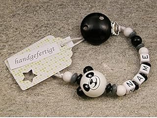 kleinerStorch Baby SCHNULLERKETTE mit Namen - Schnullerhalter mit Wunschnamen - Mädchen Jungen Motiv Panda Bär in schwarz