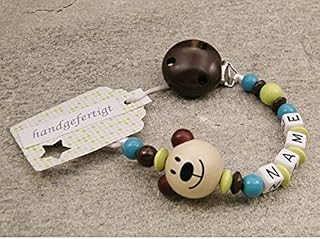 kleinerStorch Baby SCHNULLERKETTE mit Namen - Schnullerhalter mit Wunschnamen - Mädchen Jungen Motiv Bär in Natur, braun