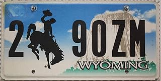 USA_Auswahl_von_Fahrzeugschildern Flaches Wyoming Nummernschild, Metall Kennzeichen, USA Schild mit Motiv Cowboy Rodeo Devils Tower, US License Plate/Blechschild