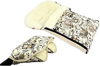 BAMBINIWELT KOMBI-ANGEBOT Muff/Handwärmer + universaler Winterfußsack (108cm), auch geeignet für Babyschale, Kinderwagen, Buggy, aus Wolle im Eulendesign (Motiv $6)