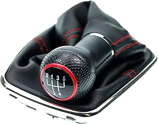 L & P Car Design L&P A253-4 Schaltsack Schaltmanschette Schwarz Naht Rot Schaltknauf 5 Gang 12mm kompatibel mit VW Golf 4 IV Rahmen Schwarz Knauf als Plug Play Ersatzteil für 1J0711113