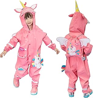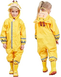 Regenmantel Atmungsaktiv Wasserdicht Kinder Mädchen Jungen Kapuze Leicht Regenanzug Einteilig Outdoor Regenponcho Overall Regen Regenjacken 1-10 Jahre