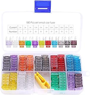 pwsap 180 Stück Mehrfarbig Mini Auto Sicherungen KFZ Sicherungen Set maßgebend Autosicherungen Flachsicherung 2A 3A 5A 7.5A 10A 15A 20A 25A 30A 35A 40A mit 2 Sicherungszieher und Aufbewahrungskoffer