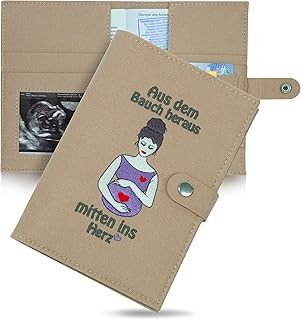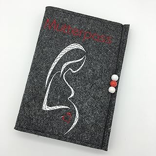 Mutterpasshülle mit Verschluss für deutschen Mutterpass, mit Tasche für Ultraschallbilder/Impfpass, Mutterpass Hülle aus Filz