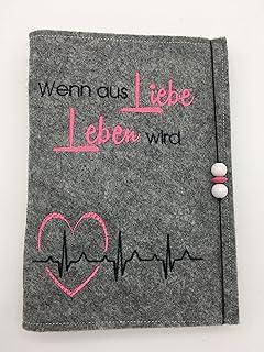 Bestickte Mutterpasshülle Mutterpass Hülle Mutterpasshuelle aus Filz Baby Schwangerschaft Zusatzfach für Ultraschallbilder Geburt Liebe/Leben PINK Herz