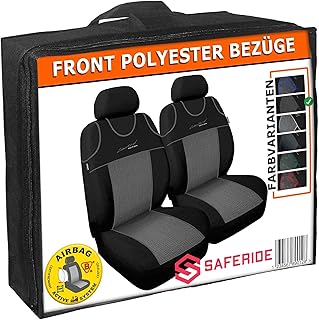 2er Set Saferide Autositzbezüge PKW universal | Auto Sitzbezüge Polyester Grau für Airbag geeignet | für Vordersitze | 1+1 Autositze vorne