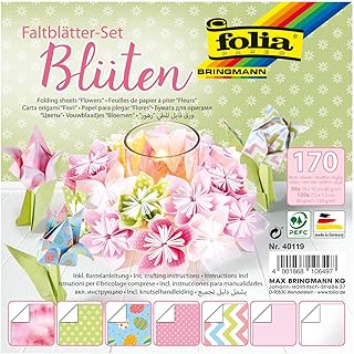 folia 40119 - Faltblätter-Set Blüten in 2 Größen, 50 Blatt im Format 15 x 15 cm + 120 Blatt im Format 7,5 x 7,5 cm, sortiert in 7 Motiven, für wunderschöne Faltfiguren, -blüten und Schmetterlinge