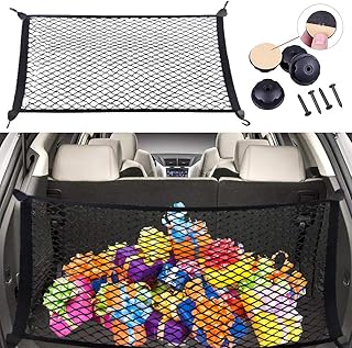 GmeDhc Universal Auto Netz, 115 x 60cm Gepäcknetz, Elastisch Nylon Schutznetz Kofferraum mit 4 Haken, Kofferraumnetz Organizer mit 4 Schrauben, Gepäcknetz Auto für Wandern, Reisen, Selbstfahrertour