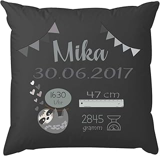 EZYshirt® Personalisiertes Faultier Kissen als Glückwunsch zur Geburt | Geschenke zur Geburt | Babygeschenk für Jungen und Mädchen Kissen | Mit und ohne Füllung