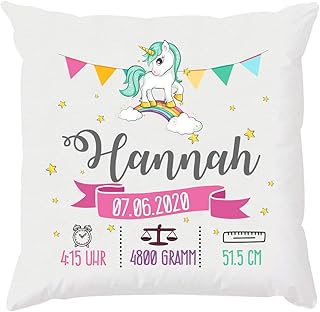 EZYshirt® Personalisiertes Kissen als Glückwunsch zur Geburt oder Taufe| EINHORN KOLLEKTION | Babygeschenk für Jungen und Mädchen