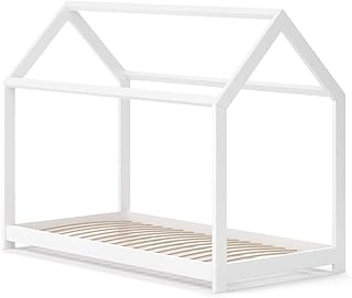 VitaliSpa Hausbett Wiki Weiß Kinderbett Kinderhaus Kinder Bett Holz Matratze (Weiß Lackiert, 80 x 160 cm)