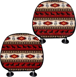 TOADDMOS Tribal Horse Azteken-Traumfänger-Kopfstützenbezüge, rot, 2 Stück, bedruckt, für Auto, LKW, SUV, Van, Kopfstützenbezüge für die meisten Fahrzeuge, universelle Passform
