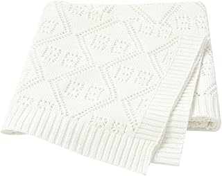 Babydecke aus 100 % Baumwolle, gestrickt, Babydecke, atmungsaktiv, für Kinderwagen, Reise, Moseskorb für den Außenbereich (100 x 80 cm), Reisweiß