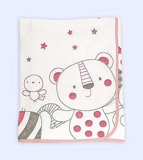 Ti TIN - weiche, saugfähige Babydecke, 80x75 cm | Krabbeldecke aus 100% Baumwolle mit doppellagigen Stoff, Babydecke fürs Auto, Wiege, Kinderwagen, Babyschale, etc,Motiv: Tiere, Farbe: rosa