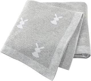 Babydecke 100% Baumwolle Decken Strickdecke Babydecke Häschen Kinderwagen Reise Moseskorb (100x80cm) grau