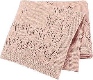 Babydecke, 100% Baumwolle, gestrickt, Babydecke, für Kinderwagen, Reise, Babykorb, 100 x 80 cm, Rosa